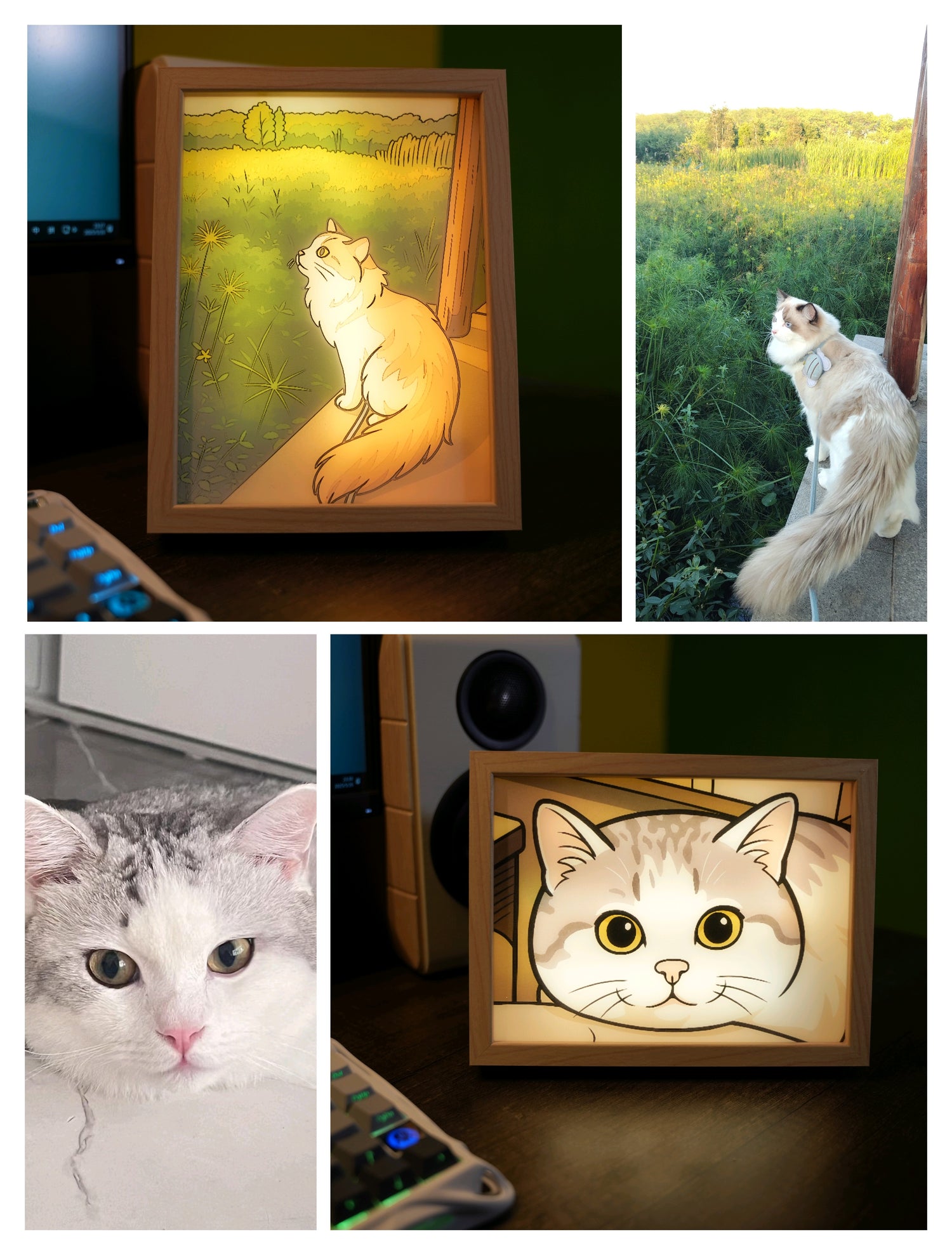 Simply provide a photo of your beloved pet, and we'll meticulously craft a custom portrait for your furry friend. Once you approve the design, we'll carefully create your one-of-a-kind pet portrait night light.